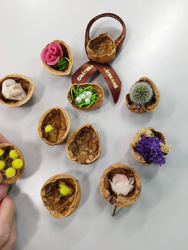 2025年11月24日 リースの材料を集めよう!!(その2) クルミをつかったクルミオーナメントでもリースをかざることができます。中に入れるのは、ドングリ、ドライフラワー、ミニチュアのお気に入りの小物(小鳥とか動物とかも)などなんでも。 お家に入っているかんじでかわいいですよ。好きな小物を用意して、自分だけのクルミのお家でリースをかざってみませんか。クルミは、割った状態のものを毎年ならべています。 (画像と情報:隊員の毛利さん) |